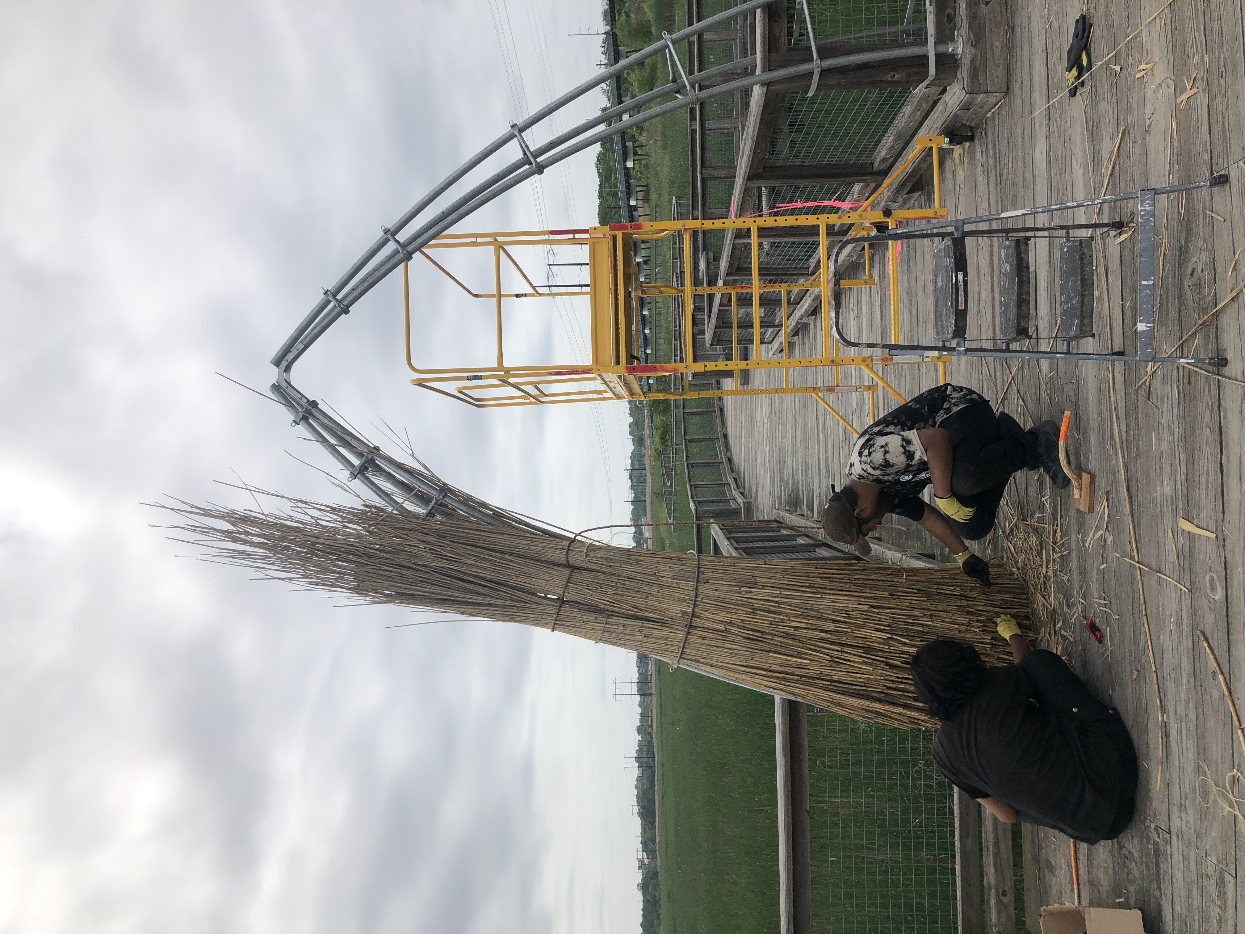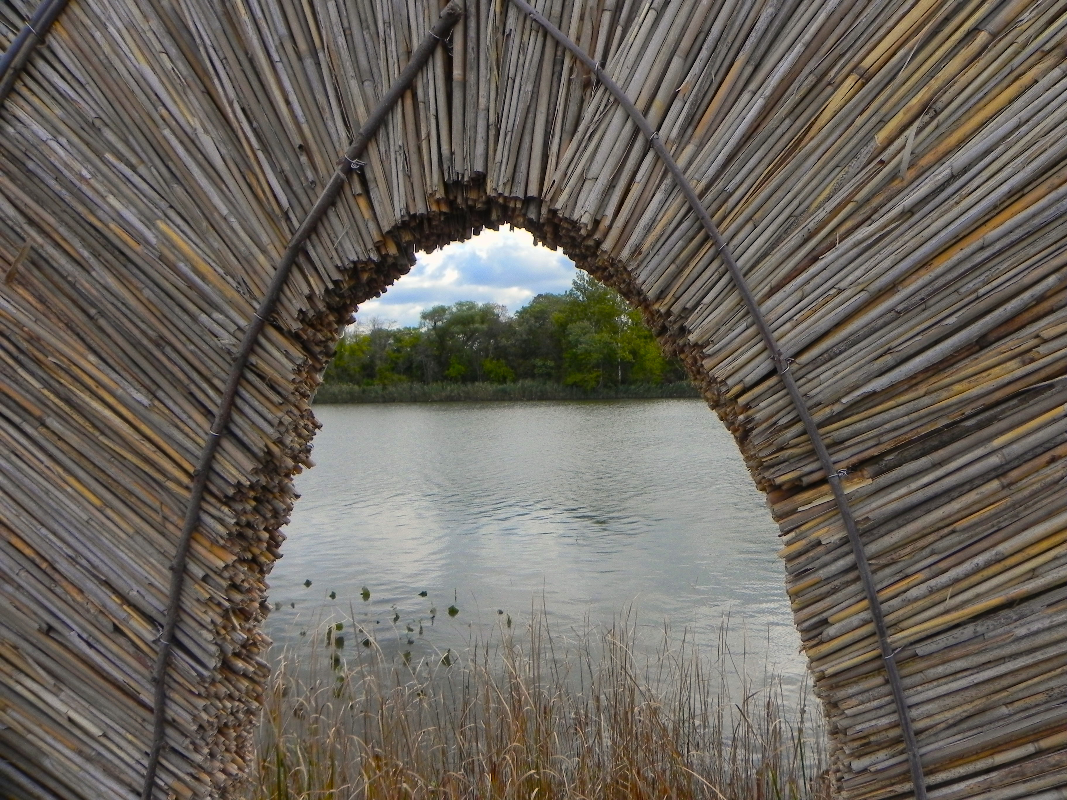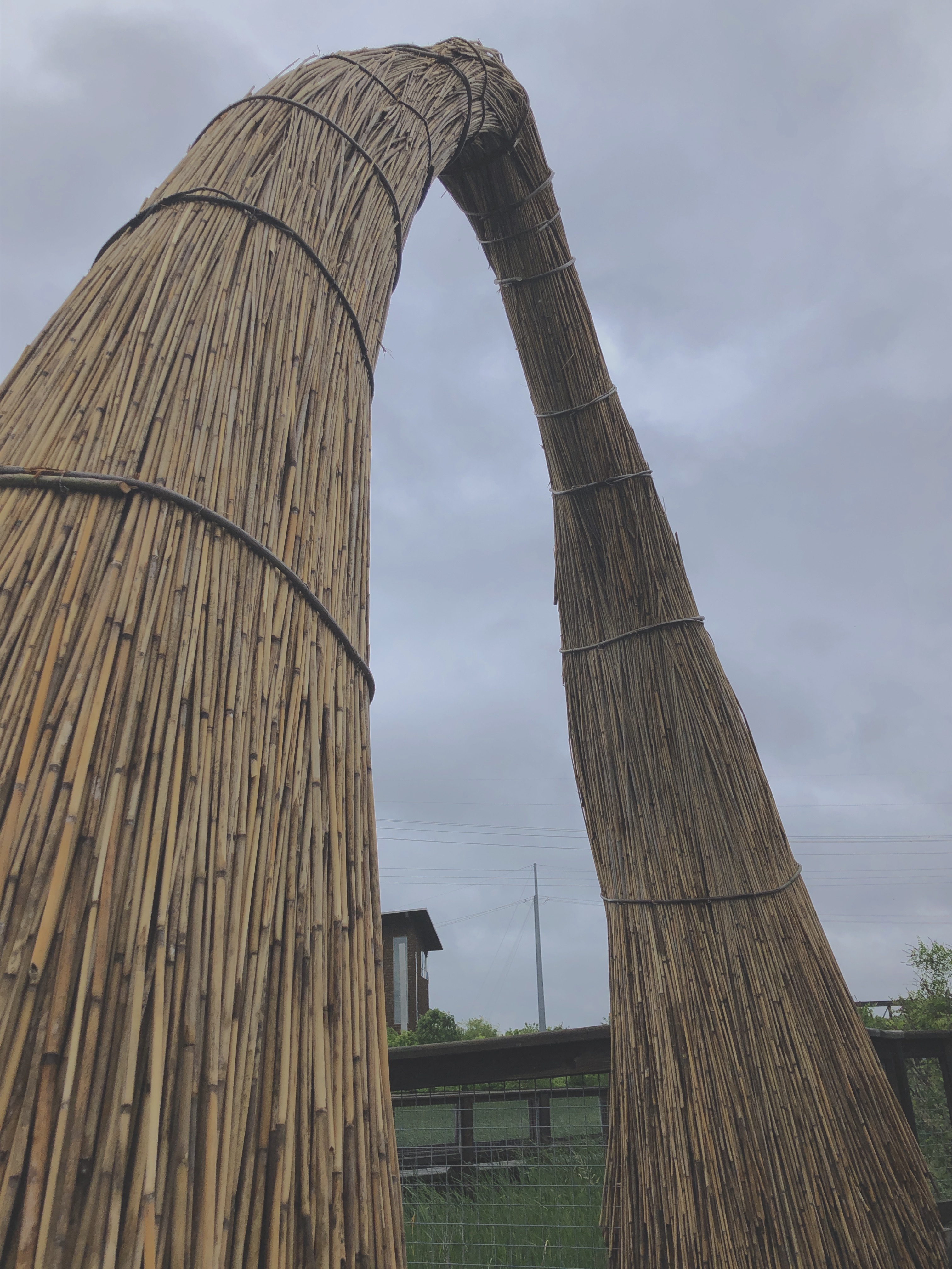 Christina Sun Catcher was one of the largest of the Water Spirit sculptures. Two thatched arches, constructed of locally-harvested Phragmites reed, created a grand entrance to the waterfront deck and a destination on the boardwalk, highlighting the view of the Christina River.